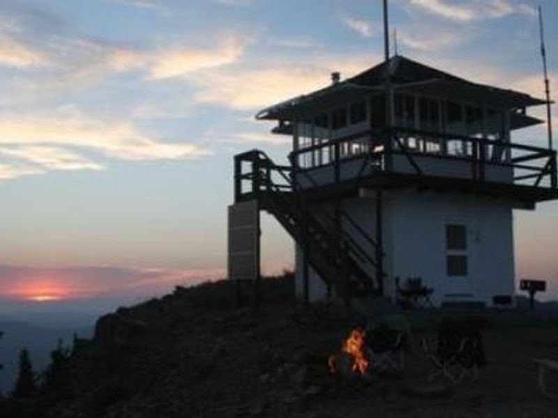 Little Guard Lookout stands as one of the last remaining fire lookouts used in the Coeur d'Alene River area. The current structure is the third in a series of lookout buildings dating back to 1919, and in October 1990, it became the first Idaho lookout accepted into the National Historic Lookout Register. The two-story lookout measures 14 x 14 feet and features an external catwalk and gabled roof. It sleeps four guests with one single bed and three fold-up cots. The ground floor kitchen is equipped with a propane refrigerator, propane cook stove, table, chairs, and basic cooking utensils. Propane for the stove and refrigerator is provided, but guests must bring their own propane for the upstairs heater and lanterns. An outdoor pit toilet is located within 200 feet of the lookout. At an elevation of 6,031 feet, the lookout offers spectacular views overlooking the North Fork of the Coeur d'Alene River and the Bitterroot Mountains, with views of nearby Downey Peak to the northwest. The lookout provides access to the Shoshone Ridge Trail #81, a scenic day hike with many viewpoints. Wildlife in the area includes mule deer, moose, osprey, and calliope hummingbirds. No water or electricity is available on-site. A mountain spring is located within a half-mile by footpath. Access requires high clearance vehicles and good tires on Forest Road 602.