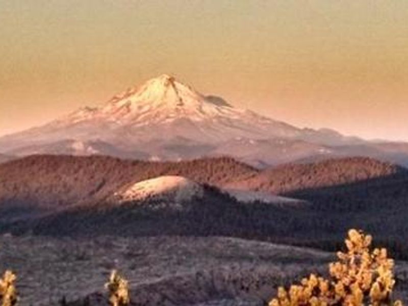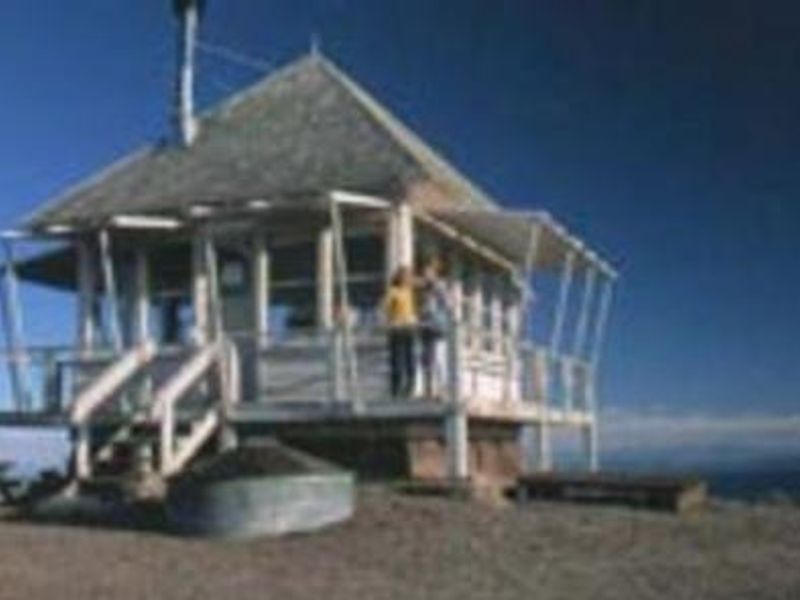 Little Mt. Hoffman Lookout was constructed in the 1920s and served as an active Forest Service fire lookout until 1978. It is one of the few remaining historic lookouts in the Shasta-Trinity National Forest and is eligible for listing on the National Register of Historic Places. The lookout is still occasionally used by the Forest Service during times of extreme fire danger. Situated at 7,309 feet on a cinder cone along the rim of Medicine Lake Highland's caldera, the lookout provides breathtaking panoramic views of Northern California's volcanic landscape. Visitors can see Mt. Shasta, Mt. Lassen, southern Oregon's Mt. McLoughlin, the Tulelake Basin to the north, the Fall River Valley to the east, and the Medicine Lake Highlands to the south. The 14x14 wooden cabin sits on the ground with a surrounding wooden deck and is equipped with a wood stove, two cots, dining table, storage cabinets, and basic cleaning supplies. Outside amenities include a barbecue pit and picnic table. The lookout accommodates up to four people and is accessible by car, though the final 4 miles are on unpaved roads unsuitable for RVs or vehicles with trailers. Visitors must bring all water, food, bedding, firewood, and supplies as the facility has no electricity, running water, or cooking facilities. The site is ideal for sightseeing, wildlife viewing, bird watching, and photography. Nearby Medicine Lake offers additional recreation opportunities including swimming, boating, and hiking. Renters must obtain a lock combination from the McCloud District Office prior to arrival, and reservations are required through Recreation.gov.