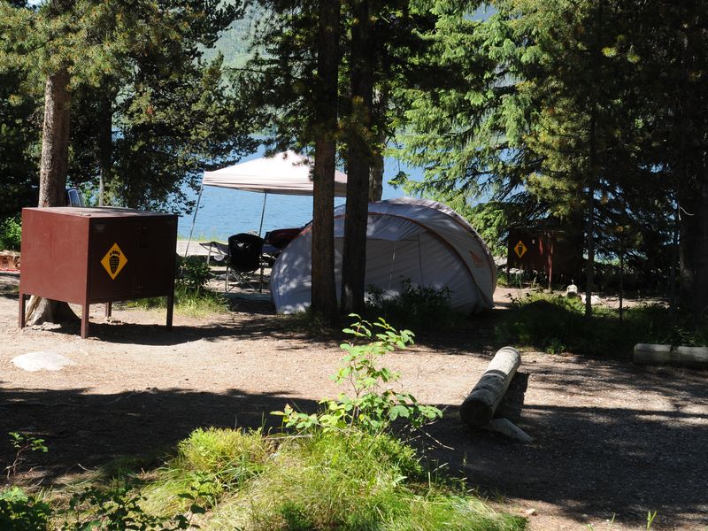Lizard Creek Campground occupies a scenic location on Fonda Point along the northern shore of Jackson Lake in Grand Teton National Park. This 60-site campground sits within a spruce, fir, and lodgepole pine forest and provides a quieter alternative to more developed park campgrounds. The remote setting offers stunning views of the northern Teton Range, including Webb Canyon, Owl Peak, and Ranger Peak across the lake, with the full expanse of the Teton Range visible to the south. The campground serves as an excellent basecamp for exploring both Grand Teton and Yellowstone National Parks, situated 18 miles north of Moran Junction and just 11 miles south of Yellowstone's South Entrance. While no trails depart directly from the campground, numerous hiking opportunities exist at nearby Colter Bay (7 miles south) and within Yellowstone. Jackson Lake provides excellent opportunities for trout fishing, kayaking, and canoeing, though the campground itself has no boat ramp. Boat ramps and rentals are available at Signal Mountain Lodge. The area is rich with wildlife including red fox, coyotes, black and grizzly bears, mule deer, bald eagles, and osprey. Proper food storage in provided bear boxes is strictly enforced. The campground typically operates from mid-June through early September and is one of the last to open and first to close in the park due to its northern location and elevation. All sites must be reserved in advance through Recreation.gov up to six months ahead.