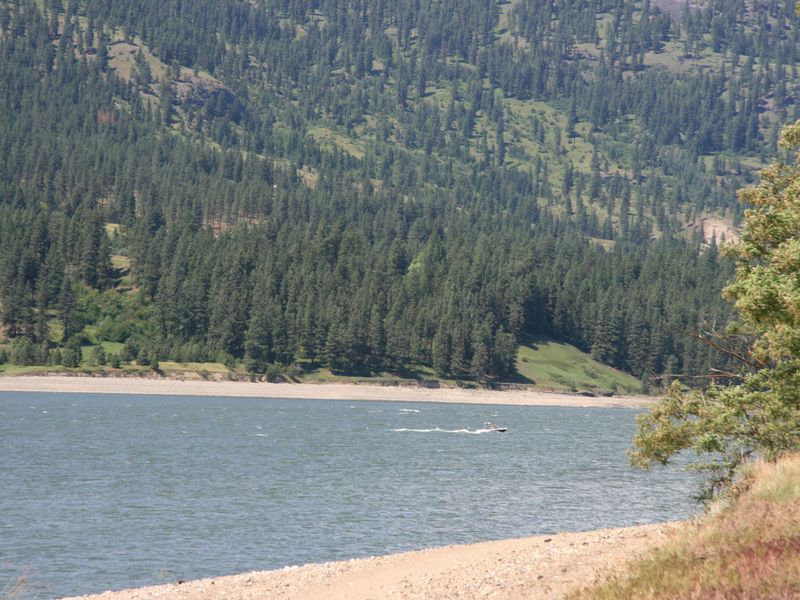 The Locust Grove Group Sites occupy the historic site of Old Kettle Falls on the northern section of Lake Roosevelt, approximately 0.25 miles from the main Kettle Falls Campground. The two spacious group sites can accommodate 50 people (Site B with 25 vehicles) and 75 people (Site A with 35 vehicles) respectively. Set within a grove of locust trees, the sites offer a more secluded alternative to the main campground while maintaining convenient access to amenities. The location provides direct access to Lake Roosevelt's 130-mile reservoir, created by Grand Coulee Dam. A multi-lane boat launch at the adjacent main campground makes water activities easily accessible. The original Kettle Falls, now submerged under 80 feet of water, was historically significant to American Indians and the fur trade. A nature trail connects the group sites to the Kettle Falls Campground and day-use area. The sites include vault toilets, fire rings, picnic tables, and seasonal potable water from May through September. The area supports diverse wildlife including moose, elk, deer, and bald eagles, while the lake offers fishing for walleye, bass, rainbow trout, salmon, and sturgeon during limited seasons.