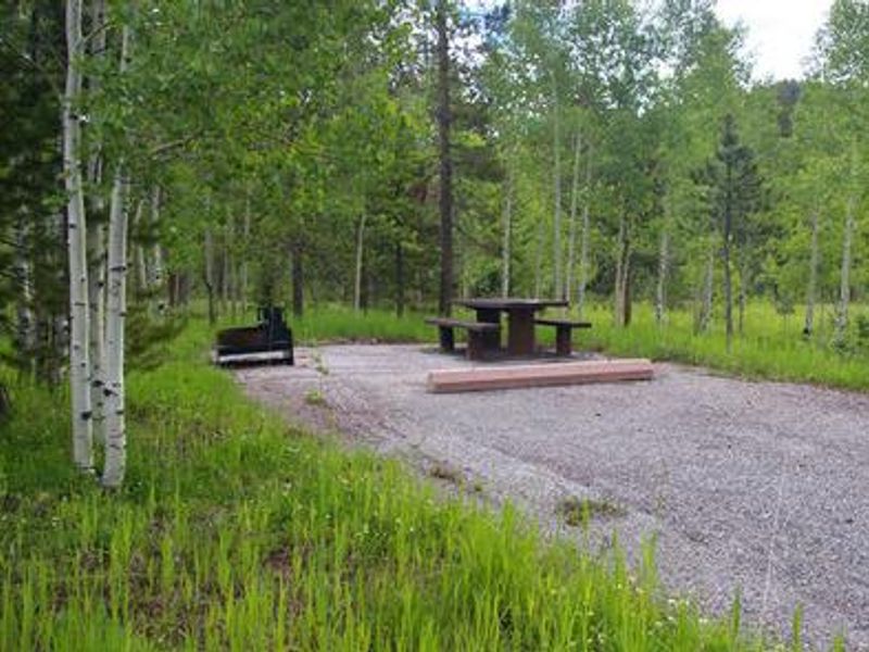 Lodgepole Campground is a peaceful mountain retreat located at 8,000 feet elevation in the Ashley National Forest, just 26 miles north of Vernal, Utah. The campground is nestled in a scenic aspen forest dotted with lodgepole and ponderosa pines, providing pleasant shade and beautiful fall colors. Summer wildflowers are abundant throughout this shady, secluded setting. The campground features 35 non-electric family campsites, each equipped with a picnic table and campfire ring with grill. Paved roads and parking spurs accommodate RVs and trailers. Water is available on-site, and firewood can be purchased from the camp host. Vault toilets serve the campground, and trash collection is provided. Dump stations are available at nearby Antelope Flat, Deer Run, and Firefighters campgrounds for a fee, and campers can access showers at Deer Run and Mustang Ridge with proof of camping registration. Many campers use Lodgepole as a base for exploring the spectacular Flaming Gorge Recreation Area. Cedar Springs Marina is less than 10 miles from the campground, providing access to the reservoir's world-class fishing for lake, brown, and rainbow trout. Boating, water skiing, jet skiing, canoeing, kayaking, swimming, and scuba diving are popular activities on the water. The nearby Flaming Gorge Dam offers beautiful views and a visitor center with area history exhibits, while the Green River below the dam provides outstanding rafting opportunities through landscapes featuring unique geology, outlaw history, and Native American rock art.