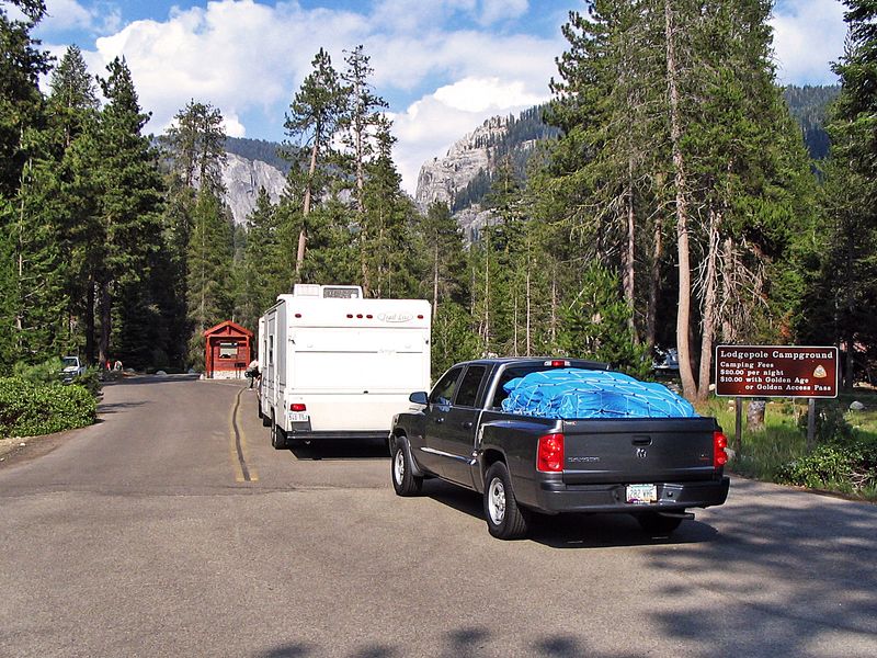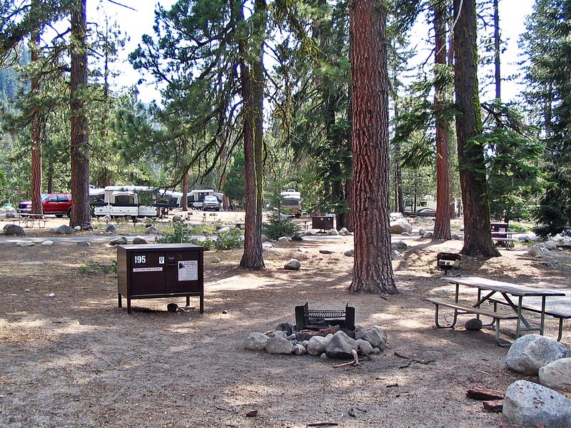 From the south via Highway 198 East from Visalia, follow signs to Sequoia National Park entrance. From the north via Highway 180 East from Fresno, follow signs to Kings Canyon National Park entrance, then continue to Sequoia. From either entrance, take Generals Highway to Lodgepole Road and turn at the Lodgepole Visitor Center. The campground entrance is beyond the market area. Note: Vehicles over 22 feet including trailers should use the northern Highway 180 entrance to avoid narrow, winding sections on Highway 198 between Potwisha Campground and Giant Forest Museum.