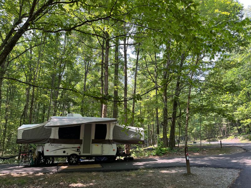 Look Rock Campground is located along the beautiful Foothills Parkway West between Walland, Tennessee and Chilhowee Lake at an elevation of 2,600 feet. The campground offers 68 campsites in a wooded high-country landscape, providing a traditional outdoor camping experience with modern conveniences. Ten sites feature electric and water hookups, while all sites have access to seasonal flush toilets, drinking water, and a dump station. No shower facilities are available on-site. The campground serves as an excellent base for exploring Great Smoky Mountains National Park's extensive trail system, which spans over 800 miles. The nearby Look Rock observation tower offers panoramic views of the surrounding mountains. Wildlife viewing and birding opportunities abound throughout the area. While fishing is not available at the campground itself, Chilhowee, Calderwood, and Cheoah Lakes are a short drive away. The campground sits along one of the park's most scenic drives. Nearby attractions include the infamous Tail of the Dragon section of State Route 129, featuring 318 curves in 11 miles. Maximum RV lengths vary by site from 13 to 48 feet. Reservations are required and can be made up to six months in advance through Recreation.gov. Stay limit is 14 consecutive days with up to 6 people and 2 vehicles per site.