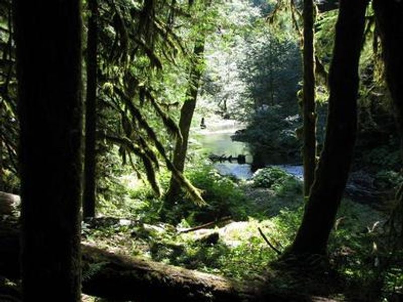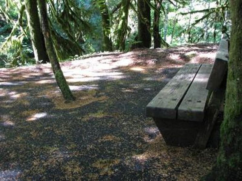 Lost Creek Campground sits in the Old Maid Flat area of Mount Hood National Forest at 2,600 feet elevation, built on one of the largest pyroclastic volcanic mudflows from Mt. Hood's eruption in the 1700s. The campground is designed to be entirely barrier-free, with accessible campsites, a fishing platform, vault toilets, and a paved nature trail that explains the area's geological history. The campground offers a mix of standard drive-in sites, walk-to sites, and two yurts, all shaded by towering evergreens with moss-covered ground providing privacy between sites. Each site includes a picnic table and campfire ring with grill. Water is available from an accessible hand pump, and firewood can be purchased from the campground host. The Wild and Scenic Sandy River is nearby, offering fishing for steelhead year-round, Coho salmon in fall, and Chinook salmon from February through October. The spectacular Ramona Falls Trail, one of the most popular hikes in the forest, is accessible via Forest Road 1825 and features a 7.1-mile loop to cascading waterfalls. Government Camp, located 18 miles away at the base of Mt. Hood, offers year-round skiing and additional amenities.