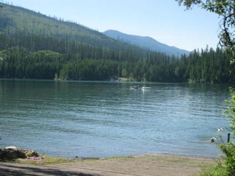 Lost Johnny Point Campground is situated on the west shore of Hungry Horse Reservoir, high in the Rocky Mountains west of the Continental Divide and approximately 18 miles southwest of the West Glacier entrance to Glacier National Park. The campground features 21 sites, with 12 available for advance reservation and 9 first-come, first-served sites. A concrete boat ramp with 10-place trailer parking provides direct access to the massive 27,750-acre reservoir. The reservoir was created by Hungry Horse Dam, the 10th highest dam in the United States, which provides a stunning backdrop to the campground. Boating is extremely popular on the reservoir, and anglers can expect to catch cutthroat trout and other species. Swimming is also a popular activity during summer months. The surrounding Flathead National Forest is home to lynx, grizzly bears, and bull trout, making it a premiere destination for wildlife viewing. Visitors can enjoy hiking, biking, and sightseeing in this spectacular mountain setting. The campground is accessible via paved Forest Road #895, reached by turning off U.S. Highway 2 at milepost 144 and traveling across Hungry Horse Dam, then 6 miles south.