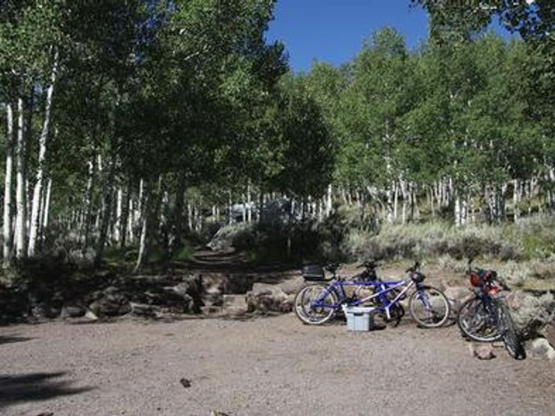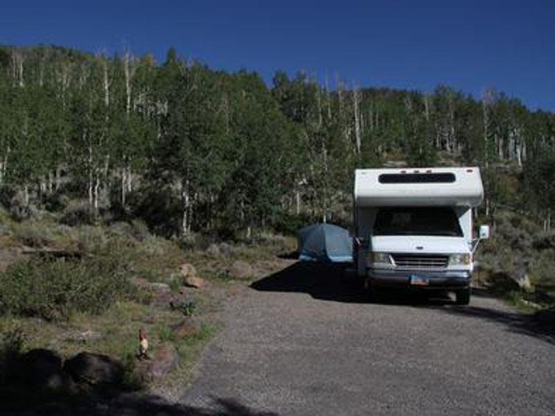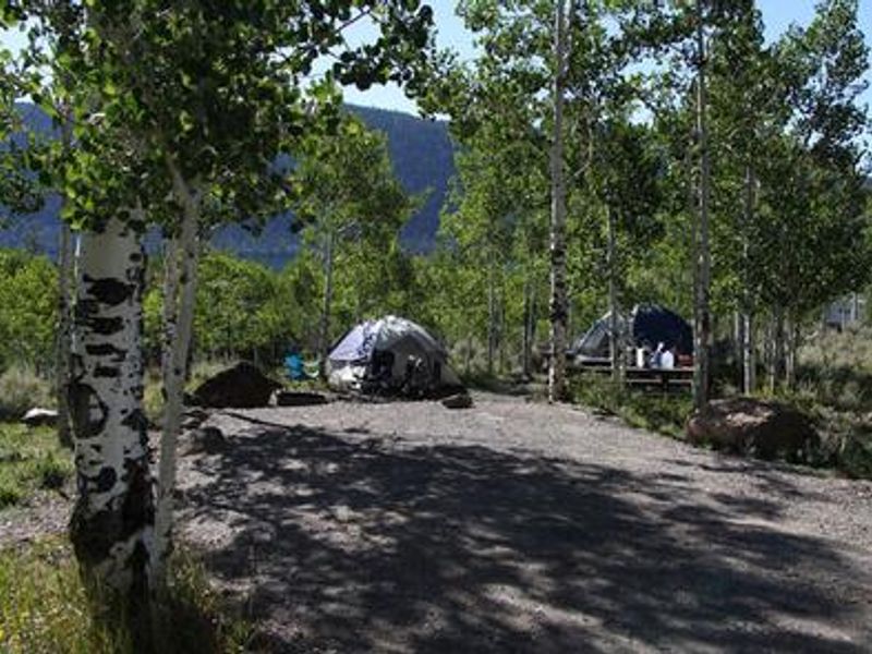 Mackinaw Campground sits on a sagebrush-covered hillside at 9,000 feet elevation, offering expansive views of Fish Lake and partial shade from aspen trees. The campground features 67 sites, including single-family sites, double sites, and four group sites that accommodate up to 20 people each. Most sites provide lake views, and all include picnic tables and fire rings with grills. Paved roads and parking spurs make the campground accessible. Fish Lake is Utah's largest natural mountain lake, covering 2,500 acres and famous for producing trophy Mackinaw lake trout weighing 20-40 pounds. Anglers also target rainbow trout and splake. The lake offers excellent opportunities for boating, canoeing, swimming, and scuba diving. The 5-mile Pelican Canyon Trail begins at nearby Bowery Creek Campground and climbs through meadows and dense forests of spruce, pine, and aspen to the 11,633-foot Fish Lake Hightop. The Lakeshore National Recreation Trail extends around the eastern side of the lake, rewarding hikers with stunning views after a 900-foot elevation gain. The campground operates under a split reservation system, with half the sites available for reservation and half first-come, first-served. Three resorts in the Fish Lake Basin provide camping supplies, cabin and boat rentals, marinas, restaurants, and groceries during the summer season.