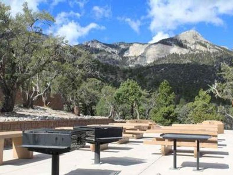 Mahogany Grove Group Campground is set in the beautiful Spring Mountains National Recreation Area, a forested desert oasis just 40 miles from downtown Las Vegas. This reservation-only facility features 6 group sites for tent camping, including the McNutt Group Site, all positioned to provide sweeping views of the Spring Mountains. The campground sits near the remnants of one of the original Civilian Conservation Corps (CCC) developed campgrounds from the 1930s, and a short interpretive trail tells the story of camping in the Spring Mountains. The campground is surrounded by stands of juniper and mountain mahogany that provide privacy from Highway 158 while offering limited shade. The Spring Mountains are a beautiful island in the desert, home to more than 100 springs that create an ideal escape from the heat of the city. The area supports diverse flora and fauna, including the ancient Bristlecone pine and the rare Mount Charleston blue butterfly. The North Loop-Mt. Charleston National Recreation Trail begins less than a mile from the campground, and Robber's Roost Trailhead is nearby. More than 60 miles of hiking and horseback riding trails crisscross the Spring Mountains National Recreation Area, with scenic driving, rock climbing, and picnicking also popular. The Spring Mountains Visitor Center is a short drive away, offering guided hikes and educational programs.