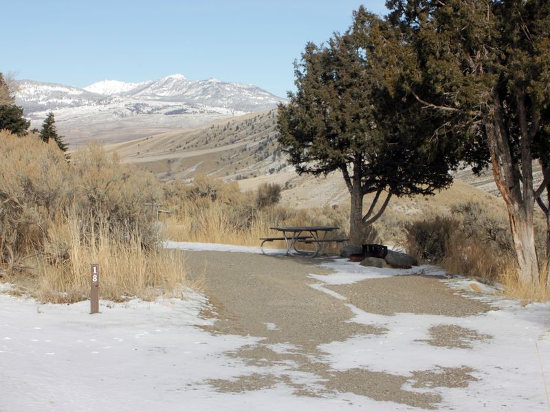 Located at Mammoth Hot Springs, five miles south of the North Entrance near Gardiner, Montana. The campground sits in the northern section of Yellowstone National Park.