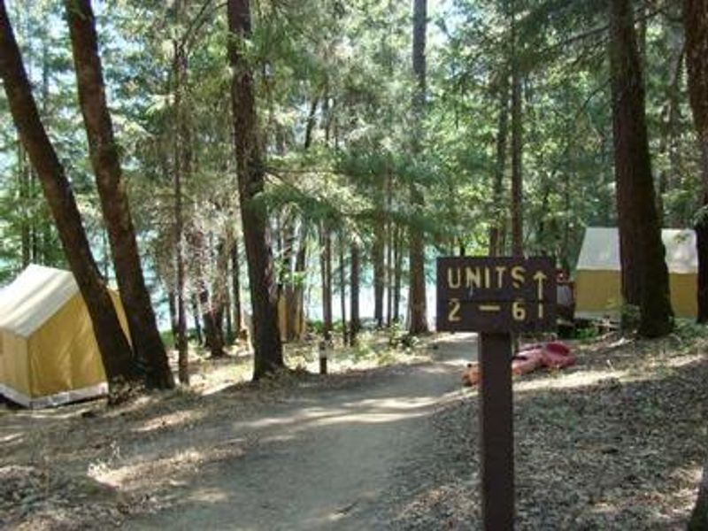 Mary Smith Campground is located along the southern shore of Lewiston Lake in Shasta-Trinity National Forest, two miles north of the town of Lewiston. The campground features 17 sites total, including 11 traditional tent sites and 6 glamping units equipped with queen beds, linens, and front deck seating. Recognized by Sunset Magazine as one of California's prettiest lake campgrounds, many sites offer direct shore access to the lake. The campsites are nestled in a mixed forest of conifer and deciduous trees with abundant wildflowers, and every site provides views of Lewiston Lake and the surrounding Trinity Alps. The campground is tent-only with no parking spurs or trailer access. Sites are arranged in small groups providing fair to outstanding privacy, with smaller tent pads that accommodate 1-2 three-person tents. Lewiston Lake stretches five miles long, reaches 70 feet deep, and sits at 1,902 feet elevation. The lake is renowned for excellent trout fishing, with abundant rainbow trout and common brown and brook trout populations. The 10 mph motorized boat speed limit creates ideal conditions for kayaking, canoeing, and float tube fishing. Pine Cove boat ramp is four miles away, while Fairview launching area on Trinity Lake is nine miles north. The area offers wonderful wildlife viewing and hiking opportunities throughout the Trinity Alps Wilderness region.