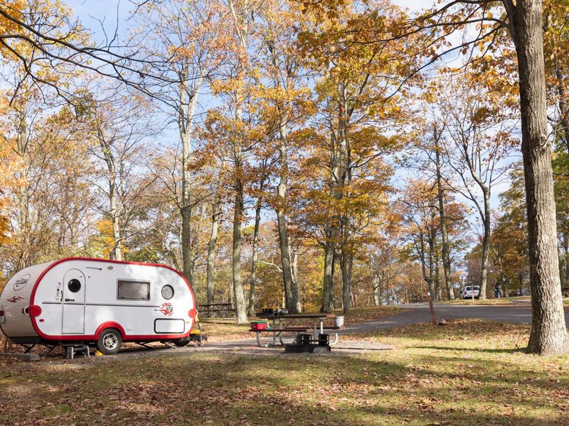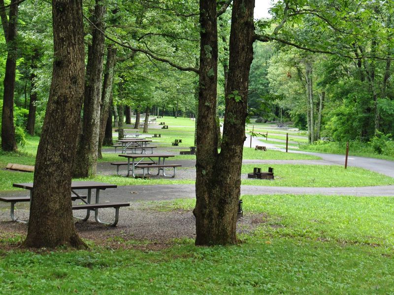 Mathews Arm Campground occupies a secluded forested setting in the northern reaches of Shenandoah National Park, making it the closest campground for visitors entering from Front Royal. Located at mile 22.1 on the scenic Skyline Drive, the campground features 165 sites spread across wooded terrain, offering a mix of reservable and first-come, first-served options. All sites include a picnic table, fire ring, and space for tents or RVs. The campground serves as an excellent launching point for backcountry adventures, with a moderately difficult trail leading to Overall Run Falls. At 93 feet, this cascade holds the distinction of being Shenandoah's tallest waterfall, with views extending across the Shenandoah Valley to Massanutten Mountain. The park's extensive trail network, including 101 miles of the Appalachian Trail, provides endless opportunities for hikers of all skill levels. Wildlife viewing is exceptional, with black bears, white-tailed deer, wild turkeys, and abundant bird species common throughout the area. Elkwallow Wayside sits just two miles south, offering camping supplies, food service, and basic provisions during operating season. The campground accommodates RVs with pull-through and deep back-in sites suitable for most rigs and tow vehicles, though hookups are not available. Four ADA-accessible sites ensure the campground serves visitors of all abilities.