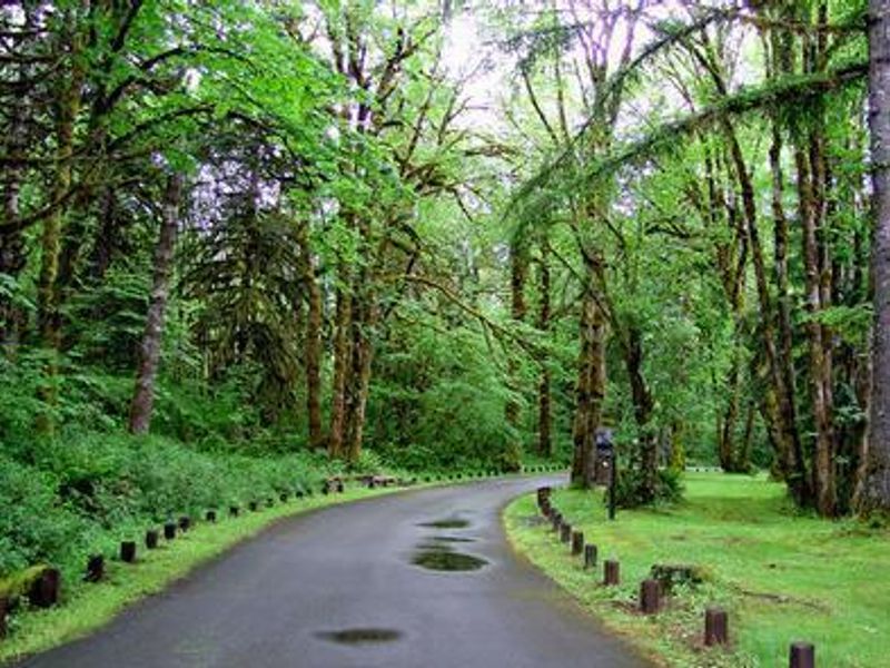 Millpond Pavilion is beautifully situated along Rock Creek, which flows into the Wild and Scenic North Umpqua River in Douglas County, Oregon. Located in the foothills of the Cascade Mountains at an elevation of 1,170 feet, the pavilion sits just west of the Umpqua National Forest in a lush region of Douglas fir, western red cedar, and sugar pine trees. The pavilion features a large picnic shelter that can accommodate up to 200 people, making it ideal for weddings, family reunions, and other group events. Modern conveniences include a long serving counter, stone fireplace, sink, two barbecue grills, and multiple electrical outlets. The reservation includes access to a flat grassy field perfect for games and activities, as well as adjacent horseshoe pits and a playground. Check-in time is 10:00 AM and groups must vacate by one-half hour after sunset. Overnight camping at the pavilion is prohibited, though nearby Millpond Campground and Lone Pine Group Campground offer camping options. From the pavilion, visitors can explore a 1-mile interpretive trail that passes through the site of an old lumber mill. The North Umpqua River, just five miles away, offers kayaking, whitewater rafting, and fishing opportunities. The scenic 79-mile North Umpqua Trail provides excellent mountain biking and hiking, and the nearby Rock Creek Fish Hatchery allows visitors to view salmon and steelhead.