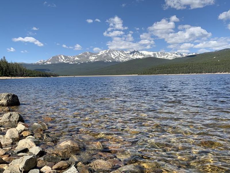 Named after Margaret "Molly" Brown, the unsinkable Titanic survivor who lived in nearby Leadville, this campground sits in a shaded lodgepole pine forest on the eastern shore of Turquoise Lake at 9,900 feet elevation. The campground offers 49 campsites perched along the scenic lake waters in the San Isabel National Forest. The 1.2-mile Turquoise Lake Nature Trail is a gentle loop through the forest down to the shoreline, connecting to the 6.4-mile Turquoise Lake Trail that parallels the shoreline from the dam to May Queen Campground. On the lake, visitors enjoy sailing, boating, canoeing, and fishing for mackinaw and rainbow trout. The nearby Mount Massive Wilderness encompasses Colorado's second highest peak at 14,421 feet. The historic gold and silver mining town of Leadville is 5 miles east, and the Top of the Rockies Scenic Byway provides access to Independence Pass, one of Colorado's highest paved passes. Each campsite includes a picnic table and fire ring with grate, with firewood available for purchase at the host site.