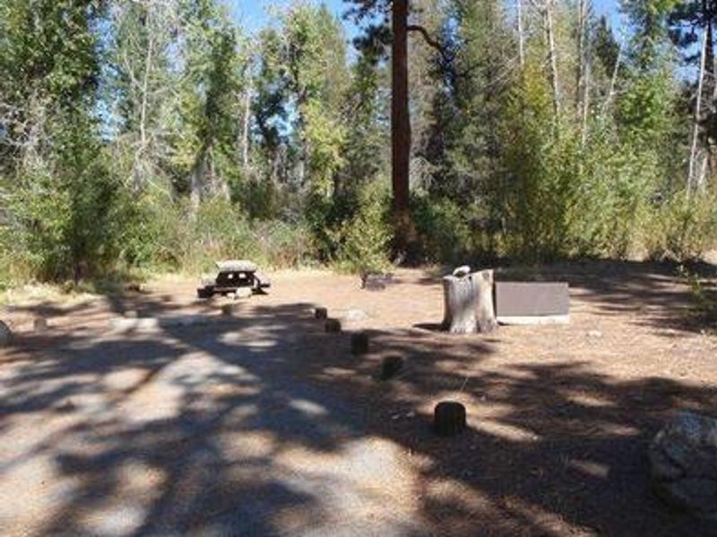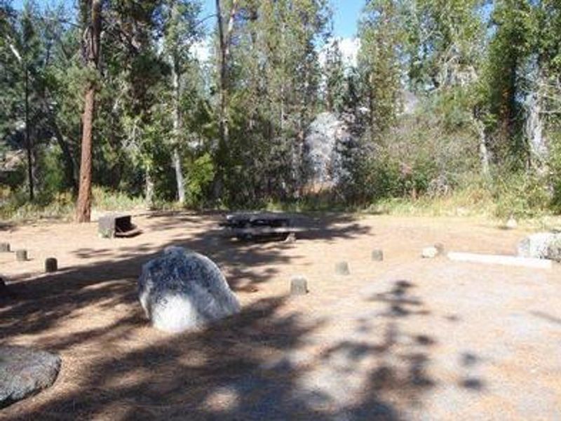Mono Hot Springs Campground sits above Kaiser Pass in the High Sierra along the South Fork of the San Joaquin River in an area known for its hot mineral baths. The camp is divided into two sections separated by Mono Hot Springs Resort, with some sites shaded by aspen and lodgepole pine. At 6,700 feet elevation with many cliffs in the area, it makes an excellent base for exploring the nearby Ansel Adams and John Muir Wilderness areas. The area provides opportunities for fishing, birding, mountain biking, hiking and relaxing in the hot springs. Wading is permitted in the San Joaquin River, which is known for its excellent fly fishing. Nearby trailheads include Devil's Table (5 miles) and Doris Lake (2 miles). The Mono Creek Trail connects Mono Hot Springs to Edison Lake, a hike of about 10 miles round-trip. Interpretive programs are offered at the campground on Friday nights during the summer. Each campsite has a picnic table, grill and bear-proof food storage locker. Vault toilets are provided, but drinking water is not available at the camp. Water and other supplies can be acquired at the general store at Mono Hot Springs Resort. Access is via paved and dirt roads, and large RVs are not recommended on Kaiser Pass Road.