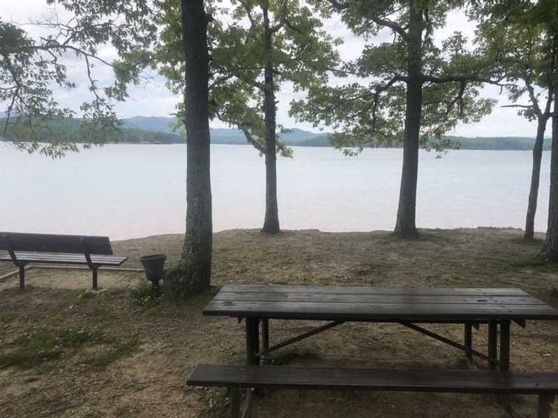 Morganton Point Recreation Area is the only developed campground located on the shores of Lake Blue Ridge, a 3,290-acre Tennessee Valley Authority reservoir surrounded by the forested foothills of the Blue Ridge Mountains in northeast Georgia. The campground is situated within the Chattahoochee-Oconee National Forest and offers over 40 campsites for tent and RV camping, including reservable sites with electric and water hookups, as well as walk-in tent sites. Some sites are available first-come, first-served. The campground provides modern amenities including flush toilets, accessible showers, drinking water, a dump station, and trash collection. Each site is equipped with a picnic table and campfire ring with grill. The adjacent day-use area features a designated swimming beach with outdoor showers, picnic facilities, boat ramp, and kayak and paddleboard rentals during peak season. Lake Blue Ridge offers year-round recreation including fishing for bass and other species, motorized and non-motorized boating, jet skiing, and swimming. Day-use hiking trails include a lakefront trail ideal for leisurely walks through the forest. The Appalachian and Benton MacKaye trails pass through Fannin County and are easily accessed from the campground. The town of Morganton is approximately one mile north with a convenience store and gas station, while Blue Ridge offers full services about 15 minutes west on Highway 76.