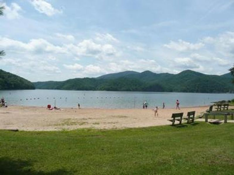Morris Hill Campground is a peaceful, rustic destination perched on a ridge overlooking the southern end of Lake Moomaw in the George Washington National Forest. Located just a half-mile from the lakeshore, this family-friendly campground provides easy access to the lake's sandy swim beaches at Coles Point, a fishing pier, and boat ramp facilities. The campground offers both family campsites and group sites that can accommodate up to 25 guests with space for eight tents. Amenities include a playground for children, picnic tables, fire pits for campfires, and modern restroom facilities with flush toilets and showers. Campers can enjoy traditional camping activities like roasting s'mores, berry picking in the surrounding woods, and wildlife watching for deer and various waterfowl species. Recreational opportunities abound in the area. Lake Moomaw is a cold-water, 2,530-acre lake fed by the Jackson River, offering excellent fishing for brown and rainbow trout, bass, and crappie. Back Creek also provides quality trout fishing. Hikers and bikers can explore the Morris Hill Bike Trail and Fortney Loop Trail. The Jackson River downstream offers fly fishing, canoeing, rafting, and kayaking opportunities. The quaint resort village of Hot Springs is located about 30 minutes east of the lake.