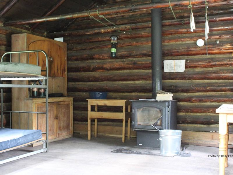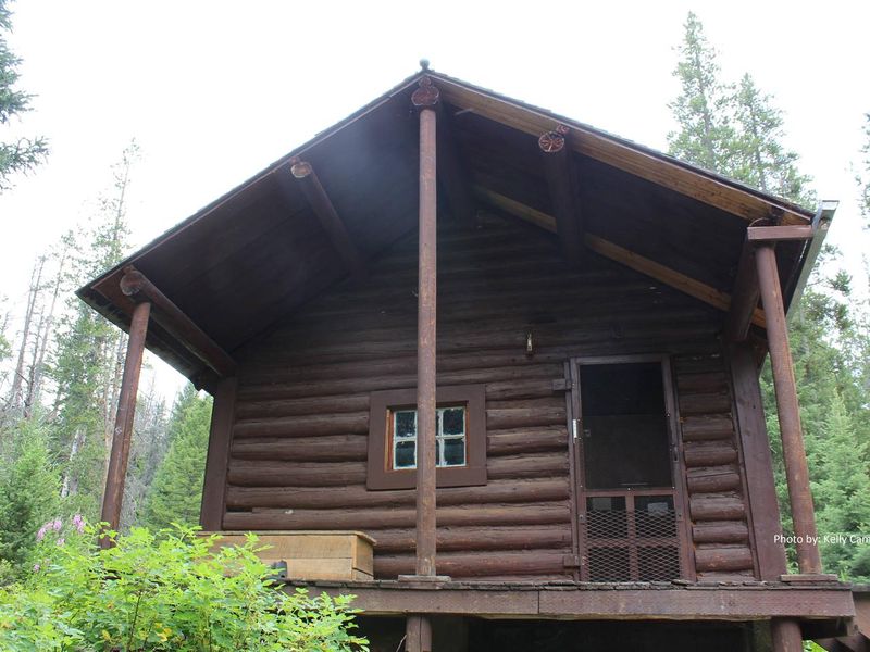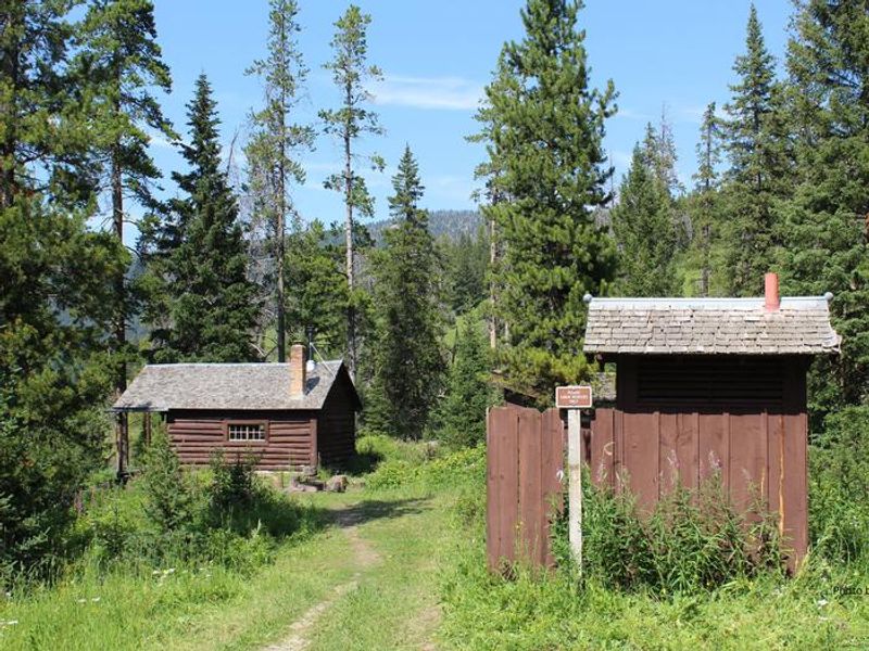 Mystic Lake Cabin is a historic Forest Service rental cabin built in 1930, nestled in a stand of pines near the southeastern shore of Mystic Lake in the Gallatin Range at an elevation of 6,400 feet. The cabin is located in a non-motorized area, requiring guests to hike, mountain bike, or horseback ride approximately 8 miles from the Sourdough Canyon Trailhead in summer. Winter access is by cross-country skis or snowshoes, with Trail 454 serving as a groomed ski trail. The cabin accommodates up to four people with bunk beds and mattresses. A wood-burning cook stove provides heat and cooking capability. Basic amenities include a table with chairs, cookware, dishes, tableware, and supplied firewood. Outside facilities include a campfire ring, a vault toilet outhouse, and a corral for up to two horses. No electricity or potable water is available; guests must bring their own water supply, bedding, lighting, and other personal items. The surrounding landscape features wildflower meadows, evergreen forests, and mountain peaks. Recreation opportunities include fishing for brook, rainbow, and cutthroat trout in Mystic Lake, hiking and mountain biking on trails like the Mystic Lake Loop, and fall hunting. Wildlife including black bears, grizzly bears, moose, elk, and mule deer inhabit the area.
