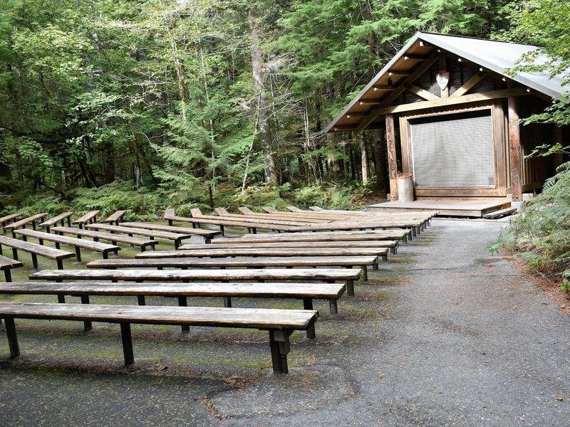 Newhalem Creek Campground is a well-developed facility within Ross Lake National Recreation Area, offering 107 individual campsites in loops A, B, and C, plus 2 group sites that accommodate up to 30 people each. The campground is situated in a dense forest of western redcedar, western hemlock, and Douglas-fir, with red huckleberries and native vegetation throughout. Located near both Newhalem Creek and the Skagit River, the largest river flowing into Puget Sound, the campground provides access to seasonal salmon viewing areas along the River Loop Trail. The campground features a mix of drive-in and walk-in tent sites, with many sites capable of accommodating RVs and trailers up to 50 feet. Each campsite includes a picnic table, fire ring, and most have tent pads. Bear-resistant food lockers are provided at each site due to active black bear presence. Facilities include flush toilets, potable water, a dump station, trash and recycling service, and paved roads and driveways. Two ADA-accessible drive-in campsites are available. The campground has no showers or electrical hookups. The North Cascades Visitor Center is located half a mile away by trail or road, offering exhibits, passport stamps, a park film, and a park store. The town of Newhalem, one mile east, provides the nearest services. A network of short, interpretive hiking trails connects the campground to both the visitor center and town, offering easy access to explore the forested landscape and river corridor.