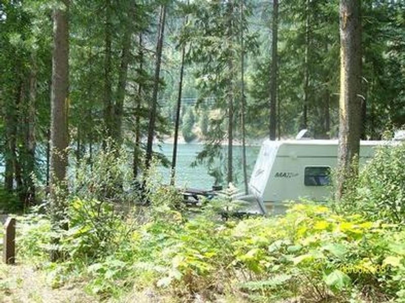 Noisy Creek Campground is situated at the south end of Sullivan Lake in the Colville National Forest, approximately 90 miles north of Spokane and 20 miles from the US-Canada border. The campground features private, well-spaced campsites set back from the 1,291-acre lake, suitable for both tent and RV camping. Hall Mountain rises dramatically from the eastern shore to over 6,000 feet, creating a stunning backdrop. The campground serves as a trailhead for two major hiking routes. The Lakeshore Trail, a designated National Scenic Trail, runs 4.2 miles along the eastern shore with viewpoints of the lake, making it a popular day-hike for all ages. The Noisy Creek Trail follows the creek for two miles before climbing sharply to the summit of Hall Mountain. Sullivan Lake provides excellent fishing for Kokanee salmon and burbot, with most success from boats. Swimming, kayaking, canoeing, and paddle boarding are popular activities. Wildlife viewing opportunities abound, with individual bighorn sheep from the Hall Mountain herd occasionally passing through the campground. Black bears, cougars, and bobcats inhabit the area, along with diverse bird species. The surrounding forest features abundant western larch, aspen, and cottonwood trees that create vibrant fall colors. Nearby attractions include the historic town of Metaline Falls, Crawford State Park with Gardiner Cave tours, and Seattle City Light's Boundary Hydroelectric Project near the international border.