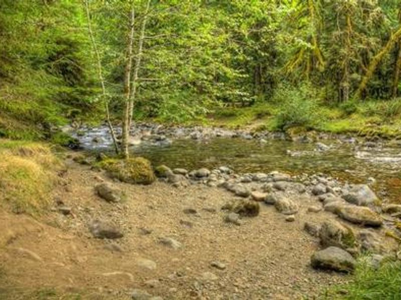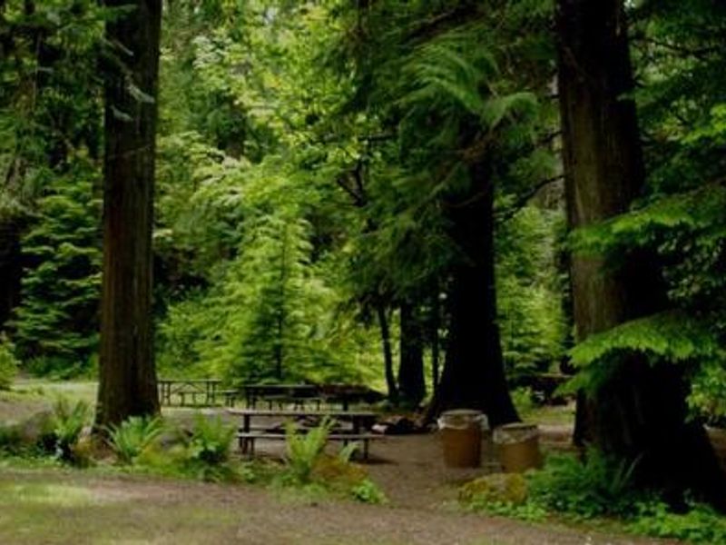 North Fork Bear Group Camp is a secluded group campground located along the North Fork of the Cispus River within an old growth stand of Douglas fir, hemlock and cedar trees. Situated between Mount St. Helens, Mount Adams, and Mount Rainier, the campground offers gated access and serves as an excellent base camp for exploring the northern Gifford Pinchot National Forest. The Bear Group Site accommodates up to 35 people with space for 8 cars or 6 RVs (maximum 22 feet). Two trails are accessible directly from the campground: the River Trail #131, a relatively flat 0.6-mile trail behind the group sites, and the North Fork Trail #122, a 1.6-mile trail that climbs to a bluff with several vistas overlooking the Cispus River. The nearby multi-use Valley Trail provides access to over 50 miles of additional off-road vehicle trails. Anglers can fish the Cispus River for brook trout, steelhead and salmon. The campground is managed by a concessionaire and provides potable water, vault toilets, picnic tables and fire pits. Wildlife including elk, deer and bears may be spotted in the area. Quiet hours are enforced from 10:00 p.m. to 6:00 a.m., and dogs must be on leash.