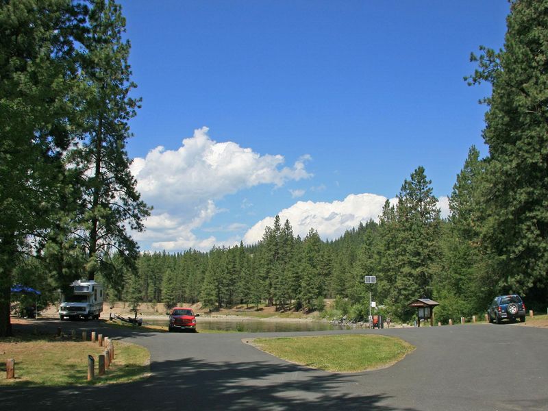 North Gorge Campground is a small but popular lakeside destination located at the northeast edge of Lake Roosevelt National Recreation Area. Set in a beautiful pine forest along the water's edge, the campground offers 12 reservation-only campsites. While most sites are designed for tent camping, six sites can accommodate RVs, with maximum lengths ranging from 18 to 36 feet depending on the site. There are no hookups available. The campground features a small boat launch and dock on the north side of the main loop, providing easy access to Lake Roosevelt for boating, fishing, swimming, and water skiing. All sites include picnic tables and fire rings. The campground has vault toilets but no potable water, so campers must bring their own. The location offers stunning lake views and a peaceful setting among the pines. North Gorge is accessible via WA-25, approximately 16.4 miles north of Kettle Falls. During summer, the campground is particularly busy on weekends. Nearby attractions include St. Paul's Mission, Fort Colville, and the scenic Sherman Drive loop. The campground has paved roads and parking spaces, with one designated ADA-accessible site.