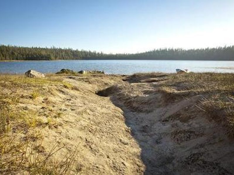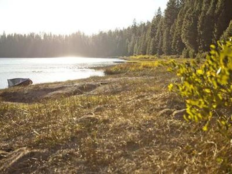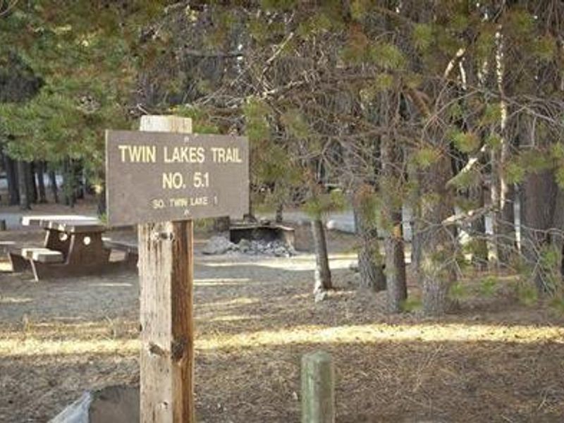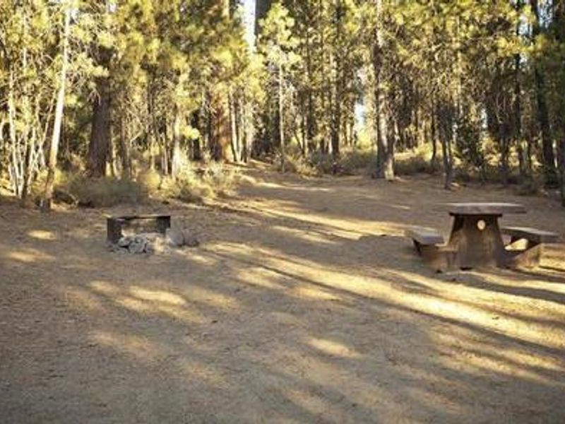 North Twin Lake Campground is located just north of South Twin Resort on North Twin Lake in the Deschutes National Forest. The lake was formed approximately 20,000 years ago when rising magma encountered groundwater, resulting in violent steam explosions that created a broad, shallow crater which later filled with water. The campground offers direct access to the lake with a small beach at the shallow end that is ideal for wading and swimming. Fishing is popular on North Twin Lake, though motorized boats are prohibited, making it a peaceful destination for kayaking, canoeing, and paddleboarding. A boat launch area is available within the campground. The Twin Lakes Trail #5.1, an interpretive trail, departs from the campground near the water and provides information about dwarf mistletoe infecting the ponderosa pine trees in the area. The campground can accommodate RVs, trailers, and tent campers with sites featuring spurs up to 40 feet in length. Each site includes a picnic table and fire pit. Vault toilets are available, but there is no potable water on-site. The surrounding landscape features nearby peaks, lava flows, and old-growth forests. The campground is located along the Cascade Lakes Scenic Byway and provides access to wilderness areas, trails, and nearby Newberry National Volcanic Monument, approximately 45 minutes away by vehicle.