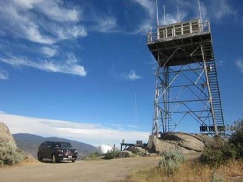 From Bakersfield, take Highway 99 to Highway 178 and travel east towards the Kern River Canyon. After passing through the last traffic light at Miramonte Drive east of town, travel downhill and turn left onto Rancheria Road. Proceed 15 miles north; the road is initially paved then becomes unimproved gravel. Turn right onto the Oak Flat spur road and travel 0.7 miles uphill to the lookout tower. High-clearance vehicle recommended. Watch for livestock along the route.