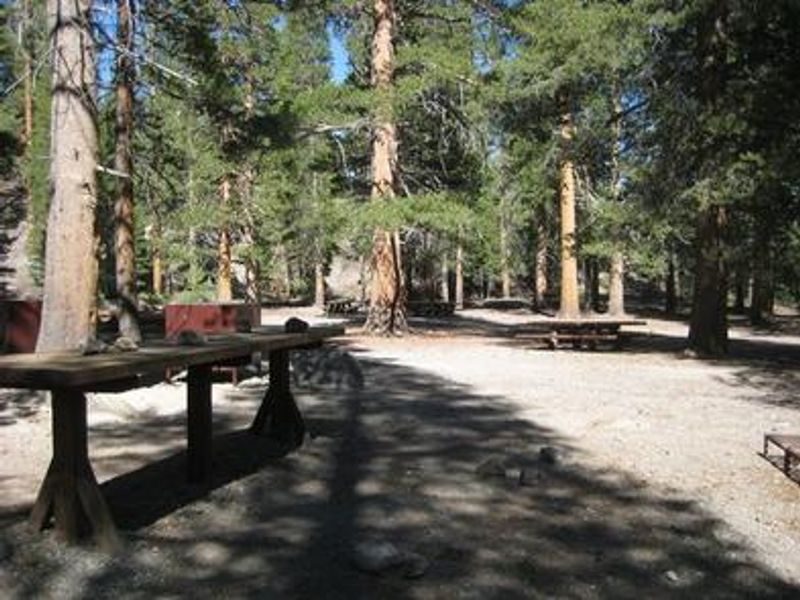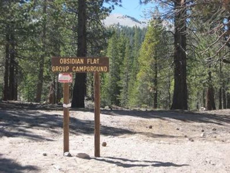Obsidian Flat Group Campground provides a secluded getaway in the eastern Sierra Nevada Mountains at 7,800 feet elevation, surrounded by pine forest and named after a nearby obsidian lava flow. Located just outside Mammoth Lakes, the campground offers one large group site that can accommodate up to 50 people and up to five RVs or 15 vehicles. The campground sits adjacent to Deadman Creek, known for exceptional eastern Sierra trout fishing. Deadman Creek Trail provides direct access to the spectacular Ansel Adams Wilderness for hikers and mountain bikers. The area is also popular with off-road vehicle enthusiasts exploring the surrounding forest and unique geology. Wildlife is abundant in the area, including black bear, mountain lions, mule deer, pine marten, pika, and numerous fish and bird species. Several lakes are located down the road, and Yosemite National Park makes an excellent day trip. The facility is gated and primitive, requiring campers to bring their own water and practice bear-aware camping techniques.