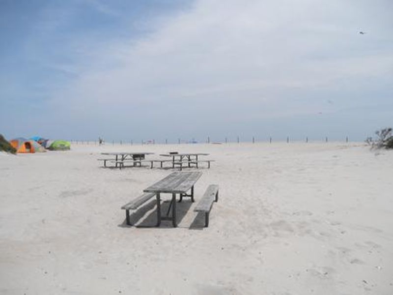 Group campers must purchase firewood locally, as out-of-state firewood is prohibited. The barrier island environment offers a unique coastal camping experience with opportunities for beach activities, wildlife viewing, and experiencing one of the Atlantic coast's last remaining undeveloped barrier islands. The campground closes for the winter season from November 16 through March 14.