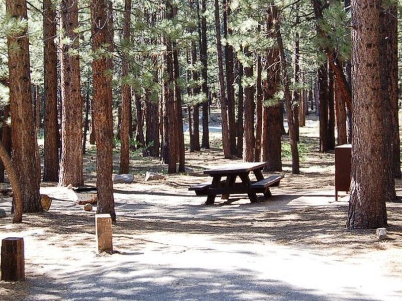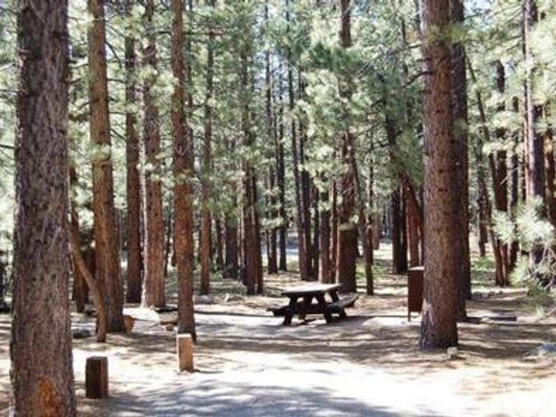 Old Shady Rest Campground is a large facility nestled in a mature Jeffrey pine forest at 7,800 feet elevation, within walking distance of the full-service community of Mammoth Lakes. The campground features 47 campsites arranged in a single loop adjacent to New Shady Rest and Pine Glen Campgrounds. The location is ideal for campers who want convenient access to town amenities while enjoying a forested camping experience. The Mammoth Lakes area offers exceptional outdoor recreation opportunities. The eastern Sierras are renowned for their challenging hiking and mountain biking trails, world-class trout fishing in nearby creeks and lakes, and proximity to major ski resorts. Popular day trips include Devils Postpile National Monument, Yosemite National Park, and Mono Basin. A paved walking and biking trail connects the campground to town parks and other nearby campgrounds. Wildlife is abundant in this area, including black bears, mountain lions, mule deer, pine martens, and numerous bird species. This is an active bear area, and all food must be stored in the provided bear-proof lockers. The campground provides flush toilets, drinking water from hand pumps, fire rings, and picnic tables at each site. Showers are available nearby in town.
