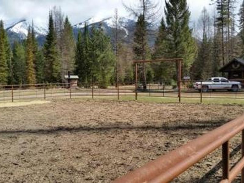 Owl Creek Corral is a specialized equestrian facility located at the Owl Creek Packer Camp Trailhead in the Swan Valley of Flathead National Forest. The main corral measures 65 ft. x 65 ft. and features five-railed steel pipe construction with metal hay bunks and a metal water trough. A smaller 42 ft. x 20 ft. area behind the main corral allows for stock separation or hay storage. The facility can accommodate up to 12 head of stock and is available for reservation for up to seven consecutive days. Situated at 4,200 feet elevation and backed by mixed conifer forest of lodgepole pine and Douglas fir, the corral serves as an excellent base for horseback riding and packing trips. Multiple trails from the trailhead lead into the Bob Marshall Wilderness Area, offering extensive backcountry access. Holland Lake, located approximately half a mile away, provides additional recreational opportunities including swimming, boating, and fishing. All hay and feed must be certified weed free, and the area is active grizzly bear habitat requiring proper food and waste storage.