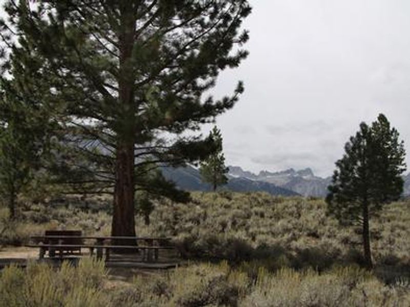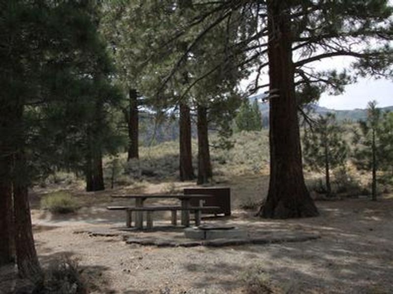 Paha Campground is located at 7,000 feet elevation along Robinson Creek, approximately 10 miles from Bridgeport, California. The campground is set beneath towering Jeffrey pines with lodgepole pines, sagebrush, and seasonal wildflowers dotting the landscape. Robinson Creek provides excellent rainbow trout fishing and can be easily accessed from within the campground. The Twin Lakes area is nearby, offering mountain scenery, boating, canoeing, and fishing for Kokanee salmon, rainbow and brown trout. Numerous hiking trails are in the vicinity, including the popular Robinson Creek Trail. The rugged Hoover Wilderness can be accessed from the Twin Lakes area, providing additional opportunities for hiking and horseback riding. The campground offers 21 sites total, including single-family sites, two double sites, and one furnished yurt. One site is ADA accessible. All sites include picnic tables, bear-proof food storage lockers, and campfire rings with grills. Reservations are available through Recreation.gov during peak season.