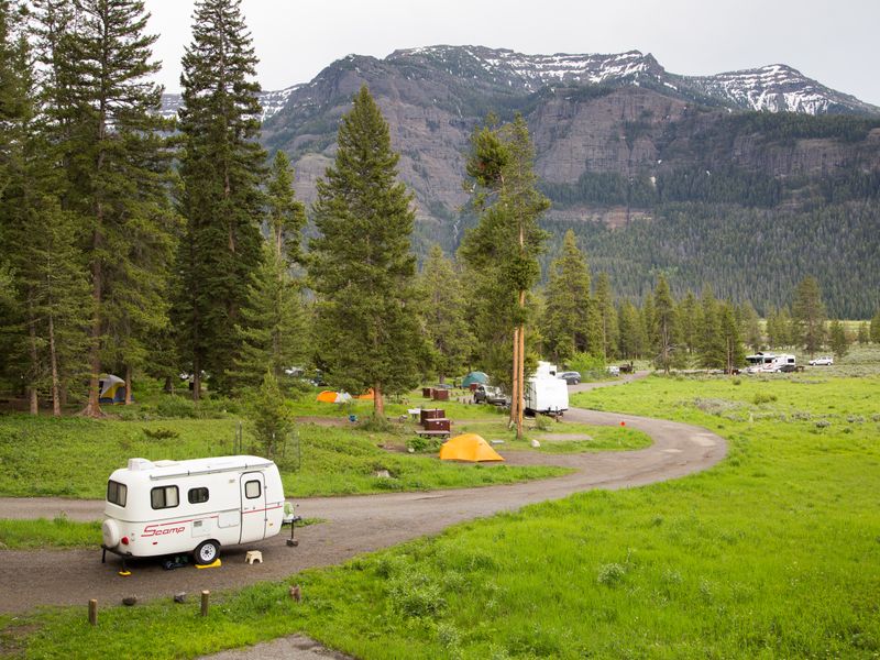 When operational, the campground charged $20 per night with a 50% discount for Interagency Access and Senior Pass holders. Standard Yellowstone regulations applied, including a 10 am checkout, six-person site occupancy limit, 14-day stay limit from July 1 through Labor Day, and generator prohibition. Wood and charcoal fires were permitted in designated fire rings, subject to wildfire danger restrictions.
