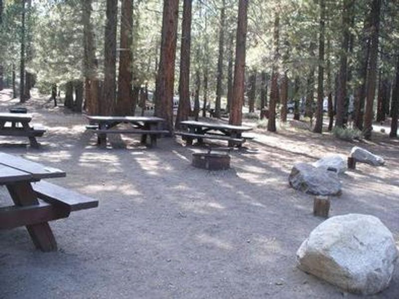 Pine Glen Group Campground sits within Inyo National Forest at 7,800 feet elevation, surrounded by a mature canopy of Jeffrey pine trees. Located at the end of New Shady Rest Campground, the facility is within walking distance of the full-service community of Mammoth Lakes, making it a popular choice for large families and groups seeking both wilderness and convenience. The campground features nine group sites arranged in a single loop, with sites accommodating either 15 or 30 people. Each site includes bear-proof lockers, picnic tables, and fire rings. Flush toilets and potable water from hand pumps are available throughout the campground. This is an active bear area, and all food and scented items must be stored in the provided bear boxes. The Mammoth Lakes area offers exceptional outdoor recreation opportunities. Hikers, mountain bikers, and off-road vehicle enthusiasts are drawn to the majestic scenery and challenging trails of the eastern Sierras. Anglers can access world-class trout fishing in nearby creeks and lakes. A paved walking and bicycling trail connects the campground to adjacent campgrounds, Shady Rest Town Park, and the town of Mammoth Lakes. Popular day trips include Yosemite National Park, Mono Basin, and Devils Postpile National Monument.