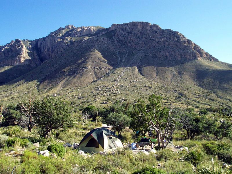 Pine Springs Campground sits at the gateway to Guadalupe Mountains National Park's extensive trail system, positioned at the opening of Pine Springs Canyon with spectacular views of the world's best example of a fossil reef and the vast Permian Basin. At 5,730 feet elevation, the campground offers 20 walk-in tent sites (38-277 feet from parking), 13 paved RV sites, and 2 group sites accommodating 10-20 people each. The campground serves as the primary basecamp for accessing the park's premier trails. Strenuous hikes to Guadalupe Peak (8.5 miles, 3,000 feet elevation gain) lead to the highest point in Texas, while the Devil's Hall Trail offers a challenging 4.2-mile route through a rocky wash. More moderate options include the Frijole/Foothills Trail. The area features scattered gray oaks and alligator junipers providing partial shade, with desert-adapted plants including prickly pear cactus, agave, and yucca. Important to note: RV sites are described as a paved parking lot sharing space with a busy trailhead, frequently congested with day hikers. High winds exceeding 50 mph are common, particularly in winter and spring. The campground offers potable water and both flush and vault toilets but no showers, hookups, or dump stations. Only containerized fuel stoves are permitted; all wood, charcoal, and propane firepits are prohibited year-round. The remote location requires fueling vehicles and purchasing supplies before arrival.