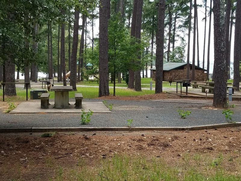 Piney Point Park is situated on the shore of 30,000-acre Wright Patman Lake within the piney woods of northeast Texas, managed by the U.S. Army Corps of Engineers. This lakeside campground provides 45 sites with water and 30-amp electric hookups, plus tent-only sites, all equipped with picnic tables, grills, utility tables, and trash cans. The facility includes flush restrooms with showers, a dump station, and a group picnic shelter available for day use. The park features a boat ramp for lake access, a volleyball court, and a 1.3-mile hiking trail that connects to Rocky Point Campground and its swimming beach. Wright Patman Lake offers excellent fishing opportunities for bass, catfish, crappie, and sunfish, as well as boating and wildlife viewing. The surrounding 55,000 acres of public forestland provide habitat for wild turkey, bobwhite quail, squirrel, white-tailed deer, waterfowl, and migrating bald eagles and pelicans. Located in the Texarkana region, the campground offers convenient access to area attractions including shopping, restaurants, and historical sites. Shreveport, Louisiana is nearby for additional entertainment options. The park has gatehouse hours Monday through Saturday 11 a.m. to 7 p.m., and Sunday 1 p.m. to 7 p.m., with access codes provided to campers for entry outside these hours.