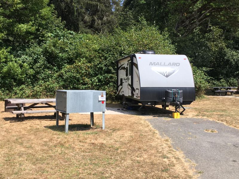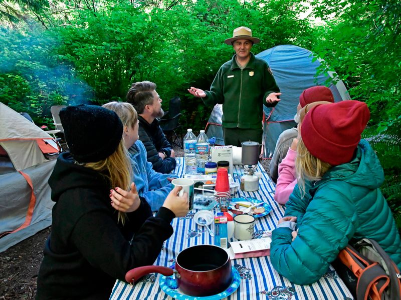 Elk Prairie Campground sits within Prairie Creek Redwoods State Park, a 14,000-acre sanctuary of old-growth coast redwoods designated as a World Heritage Site and International Biosphere Preserve. The campground offers 75 sites, including four ADA accessible cabins, nestled in a verdant forest setting where Roosevelt elk graze in nearby meadows and black-tailed deer roam freely. The campground provides year-round hot showers, flush toilets, and potable water, making it an ideal base camp for exploring the park's extensive trail system of over 75 miles through ancient redwood forests and along wild beaches. Seasonal amenities include ranger-led programs at the amphitheater, firewood sales, and a camp host. The visitor center with exhibits and nature store is located nearby at the southern end of Newton B. Drury Scenic Parkway. Summer temperatures range from 40 to 75 degrees with frequent morning and evening fog, while winter brings cooler conditions from 35 to 55 degrees with rain common from November through May. The campground accommodates RVs up to 27 feet or trailers up to 24 feet, though hookups are not available. Reservations are strongly recommended between May 1 and September 30, with sites typically available first-come, first-served during the off-season.