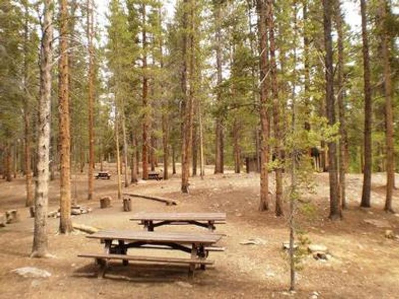 Printer Boy Group Campground sits within the Turquoise Lake Recreation Area in San Isabel National Forest, providing a high-elevation group camping experience at 10,000 feet. The campground features four reservable group sites: sites 1 and 4 accommodate up to 75 people each, while sites 2 and 3 accommodate up to 35 people each. A centrally located cooking shelter with electricity is available on a first-come, first-served basis. The campground is situated within walking distance of Turquoise Lake's eastern shore, surrounded by lodgepole pine and subalpine fir forest. Recreational opportunities include fishing for stocked cutthroat, rainbow, brown, and lake trout, as well as boating, sailing, and canoeing. The 1.2-mile Turquoise Lake Nature Trail connects to the 6.4-mile Turquoise Lake Trail along the shoreline. On-site amenities include ball fields, a playground, horseshoe pits, and a volleyball court. Campers must bring their own sports equipment. The nearby Mount Massive Wilderness encompasses 30,540 acres of primitive land, much of it above timberline. The historic mining town of Leadville is a short drive away, and Independence Pass offers scenic drives with breathtaking Rocky Mountain views. Firewood is available for purchase at the camp host site.
