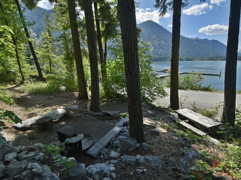 Purple Point Campground is a small, walk-in campground located in the Lake Chelan National Recreation Area at the head of Lake Chelan. The campground features 6 tent-only sites positioned along or near a paved road, approximately an 8-minute walk from the Stehekin Landing boat dock. Stehekin is a remote mountain community accessible only by boat, plane, or on foot, with no road connections to the rest of Washington. The campground provides access to several excellent trails including the Imus Trail, Purple Creek Trail, and Lakeshore Trail. Additional trails further up the Stehekin Valley can be reached via foot, bike, or shuttle bus, offering opportunities for extended wilderness backpacking trips. The area is home to black bears, and proper food storage is required. Lake Chelan offers opportunities for boating, fishing, and cold-water swimming. Stehekin Landing has limited services including a small store with basic groceries, a restaurant at the North Cascades Lodge, and public shower and laundry facilities near the landing. The east side of the Cascades enjoys warmer, drier summers than the west side, with summer temperatures reaching the 90s. The campground operates on a reservation system during peak season (late May through early September) and is free and first-come, first-served during the off-season.