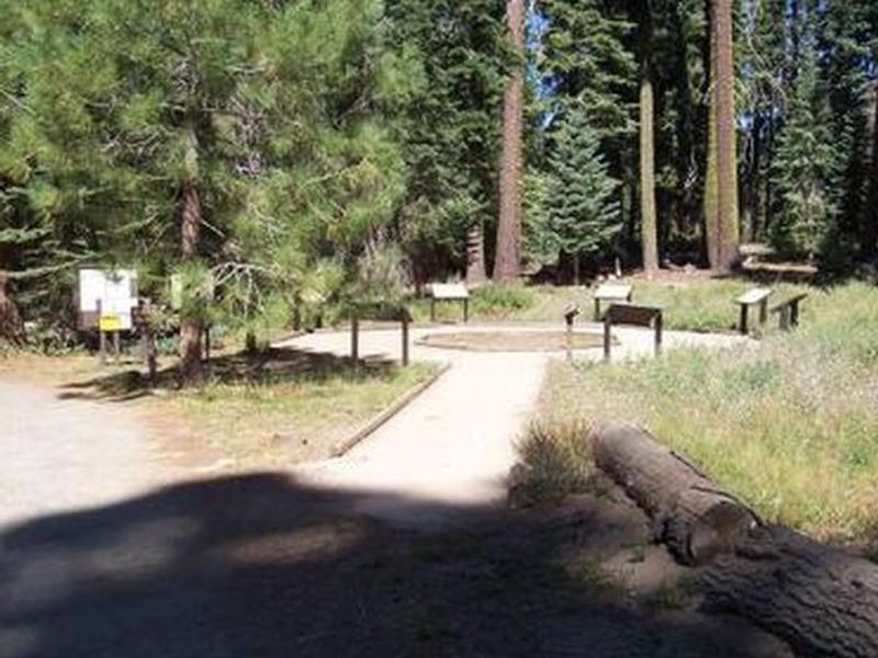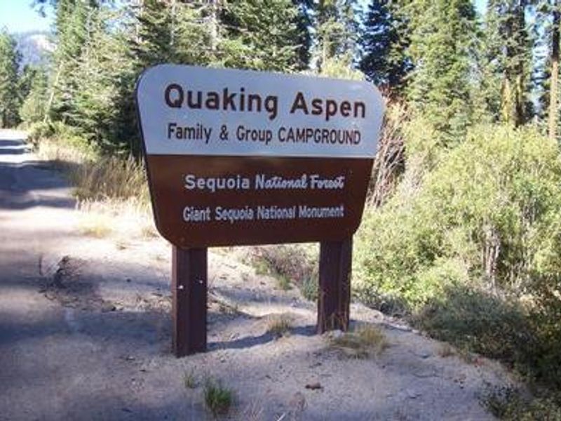 Quaking Aspen Campground is situated in the Giant Sequoia National Monument near numerous distinctive sequoia groves at an elevation of 7,000 feet. The campground takes its name from the quaking aspen trees that grow in the area, displaying brilliant green foliage in spring and deep russet-gold colors in fall. The facility includes 30 standard campsites, three small group sites accommodating up to 12 people each, four tent-only sites, and yurt rentals, with an amphitheater for evening programs. The campground serves as an ideal base for exploring the monument's giant sequoia groves. Freeman Creek Grove, one of the largest unlogged sequoia groves at 1,425 acres, features several massive trees including the President George Bush Tree. Bear Creek Grove offers trails winding through the Belknap Complex along Bear Creek and the Tule River. The Summit Trail, located 10 miles north, provides access to high country wilderness. Fishing is available year-round in the Tule River drainage. The Trail of 100 Giants, Dome Rock, and the Needles rock formation are within easy day-trip distance. Limited turnaround space restricts RVs to 26 feet or less. Some campsites overlook meadows, and vault toilets and picnic areas are provided throughout. The area is bear country, requiring proper food storage. The campground is operated by Rocky Mountain Recreation Company under permit from the Sequoia National Forest.