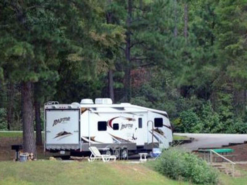 R. Shaefer Heard Campground is a U.S. Army Corps of Engineers facility located on the southern shore of West Point Lake, which spans the Georgia-Alabama state line along the Chattahoochee River. The 35-mile lake features 525 miles of shoreline surrounded by rolling fields and deep forests that display outstanding fall foliage. The campground offers 117 campsites, all equipped with electric and water hookups. Amenities include a dump station, coin-operated laundry facilities, hot showers, a boat ramp for lake access, and hiking trails that wind through the forested landscape and along the lake. Some sites feature wooden decks and many are situated directly on the water. West Point Lake is known for excellent fishing opportunities, with abundant populations of bass, catfish, crappie and bream. The lake's dozen creeks and more than 40 square miles of water provide numerous fishing spots. Boating is extremely popular, with 34 public boat ramps around the lake and two full-service marinas. A 10,000-acre wildlife management area at the upper end of the lake offers hunting opportunities and habitat for diverse wildlife.