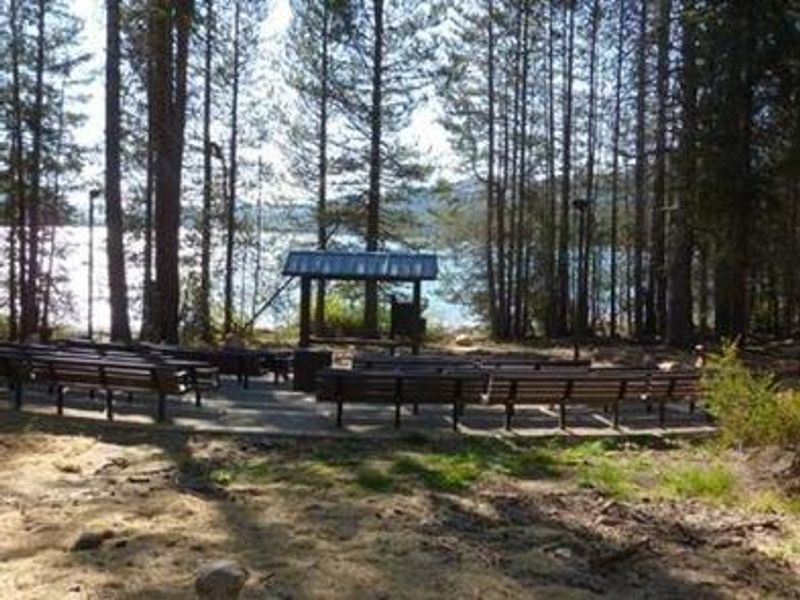 Rancheria Campground is a large lakeside facility located on the shores of Huntington Lake at 7,000 feet elevation near the Kaiser Wilderness in Sierra National Forest. The campground features 149 sites tucked under a dense canopy of fir and pine trees, including several walk-to tent-only sites positioned directly on the lakeshore that allow for informal mooring of boats. The campground accommodates both tent campers and RVs up to 40 feet in length. Each site includes a dirt parking spur, picnic table, campfire ring, and grill. Some sites offer lake views while others provide more privacy in the forest. An on-site amphitheater hosts campfire programs on summer weekends, and the campground serves as an excellent base for exploring both Huntington Lake and the Kaiser Wilderness. Nearby recreation includes numerous hiking trails such as Rancheria Falls (1 mile), Indian Pools (1 mile), and Black Point (0.7 miles). The 12-mile Kaiser Loop Trail provides access to the Kaiser Wilderness trail network. Huntington Lake offers swimming, sailing, boating, canoeing, kayaking, fishing for rainbow and brook trout, and water skiing. The Billy Creek Guard Station museum and Eastwood Visitor Center are located nearby. Check-in is at the Vista Recreation Kiosk at the marina.