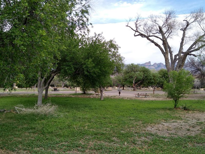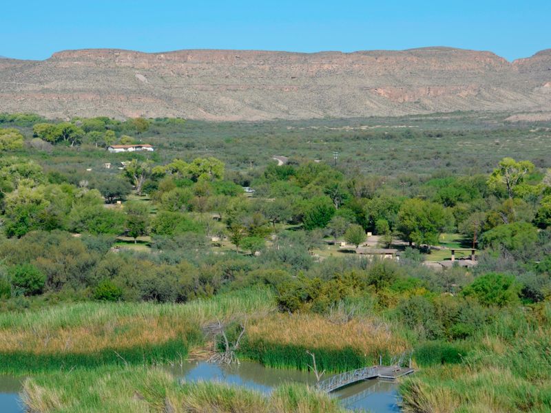 Rio Grande Village Group Campground sits on the banks of the Rio Grande at the international boundary between the United States and Mexico. The four group campsites are designed for organized groups of nine or more people and serve as one of the most popular group camping options in Big Bend National Park. Located at 1,850 feet elevation, the campground is set in a grove of cottonwood and acacia trees offering shade and outstanding views of the Sierra del Carmen Mountains in Mexico, which light up with hues of red and orange during sunset. The campground is tent-only with no RV or trailer access, except for Group Site C which allows one small recreational vehicle up to 20 feet. Generators are prohibited. Each site is equipped with picnic tables, charcoal grills, and bear-proof food storage lockers. Flush toilets and potable water spigots are within easy walking distance, and coin-operated showers and laundry facilities are available at the nearby Rio Grande Village Store. The location serves as an ideal launch point for exploring Boquillas Canyon, the Boquillas Port of Entry, Hot Springs Historic Area, and the Marufo Vega Loop trail. River access allows for canoeing and kayaking, while the area is renowned for birdwatching with rare species found only in Big Bend. Winter temperatures are pleasant with daily highs in the mid-70s to low 80s, while summer months from April through September are extremely hot with daily highs exceeding 100-107 degrees.