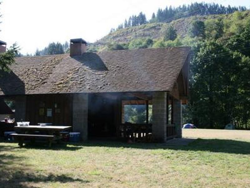 River Edge is a group campground nestled on the banks of the Alsea River in the Siuslaw National Forest, surrounded by large Sitka spruce, Douglas fir, alder trees and blackberries. The accessible facility accommodates up to 100 guests and features a large shelter covering several picnic tables, with campfire rings and grills both under the shelter and outside. The campground provides drinking water, electricity, and four vault toilets, with firewood available for purchase onsite. The campground's open play field is ideal for group games like Frisbee and soccer, while the adjacent Alsea River beckons visitors for canoeing, swimming, and excellent fishing opportunities. Anglers cast for Coho and Chinook salmon as well as Steelhead trout. An adjacent boat ramp and day use area provide easy river access. The Alsea River flows 48.5 miles from the town of Alsea to the Pacific Coast at Waldport and Alsea Bay. Located about 25 minutes from the sandy beaches of Waldport on the Oregon Coast, the campground offers easy access to Cape Perpetua Scenic Area for whale watching and Mary's Peak, the highest point in Oregon's Coast Range. The campground is situated in the eastern part of the Siuslaw National Forest, which encompasses over 630,000 acres stretching from the lush coastal mountains to the Oregon Dunes and Pacific Coast.