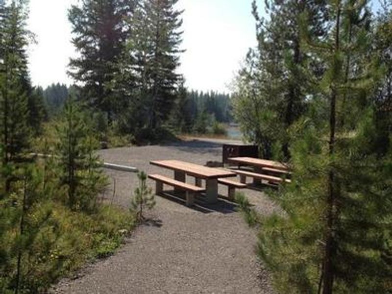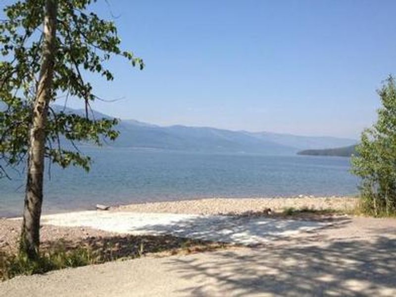 Riverside Campground is located on the 27,750-acre Hungry Horse Reservoir, high in the Rocky Mountains and surrounded by towering mountain peaks. The reservoir was dammed to provide hydroelectric power and flood control, and the Hungry Horse Dam is the 10th highest dam in the United States. The campground consists of one large group site that can accommodate up to 5 RVs, equipped with 3 tables and 3 campfire rings with grills. A concrete boat ramp provides direct access to the reservoir for boating, swimming, and fishing. The campground offers accessible vault toilets but does not provide water or garbage service. Campers can obtain water from hand pumps at Murray Bay Campground, located 1 mile south. Campground roads and parking spurs are gravel. The site is managed by a concessionaire, Flathead Valley Campgrounds, and a host at nearby Murray Bay is available to assist campers. Recreational opportunities abound, with excellent boating on the massive reservoir, fishing for cutthroat trout, swimming, hiking, and big game hunting in the surrounding mountains. The campground is approximately 31 miles southwest of the West Glacier entrance to Glacier National Park. The 20-mile access road from Martin City on Highway 2 is paved for the first 3 miles, then becomes gravel. Reservations are available through Recreation.gov with a 10-day stay limit.