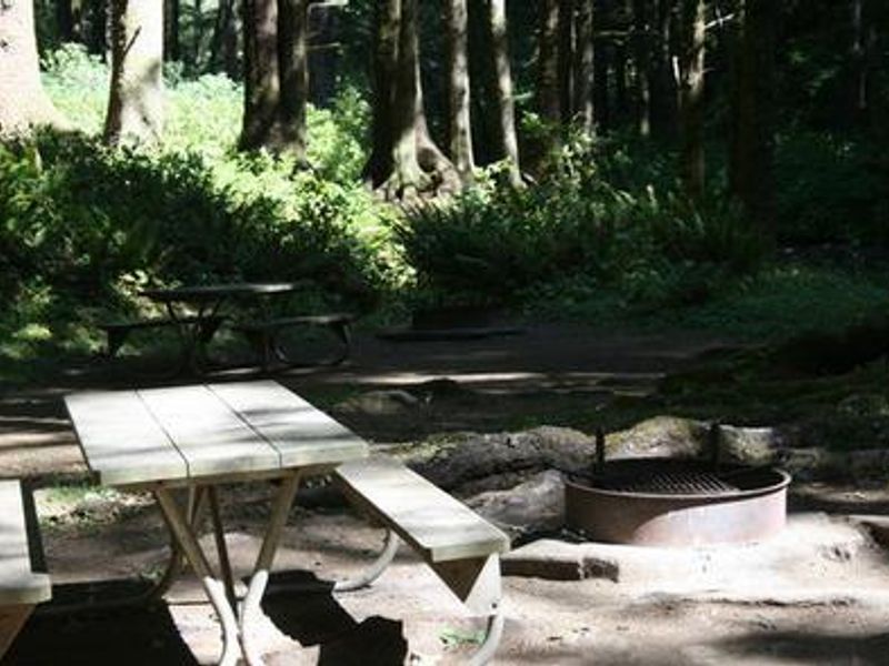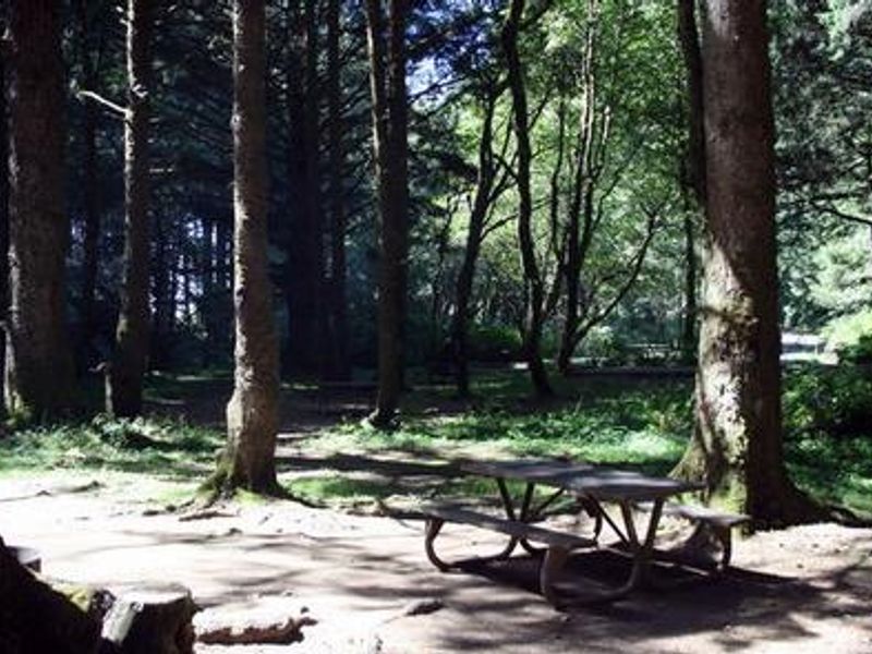 Rock Creek Campground is nestled in a grove of large spruce and Douglas fir trees along Rock Creek, just off the Pacific Coast of Oregon in the Siuslaw National Forest. The campground's 13 single-family sites are situated in a lush coastal rainforest environment where mosses drape the branches and ferns cover the forest floor, lending a true rainforest appearance. The beach and day-use parking area can be accessed within a half-mile from the campground, providing opportunities to view awe-inspiring Pacific sunsets and wildlife including pelicans, shorebirds, sea lions, and migrating whales. Rock Creek offers excellent birding and fishing opportunities, with anglers casting for cutthroat trout and salmon. The nearby Rock Creek Wilderness Area encompasses about 7,500 acres of dense coniferous rainforest, where bigleaf maple and red alder trees line the creeks and rhododendrons dot the forest floor. The Cape Perpetua Visitor Center is located a few miles north, offering phenomenal ocean views, short films, and whale watching opportunities in March. Visitors also enjoy exploring tide pools at Cape Perpetua and hiking along the 23-mile trail system that leads through dense old-growth forests to rocky coastal overlooks.