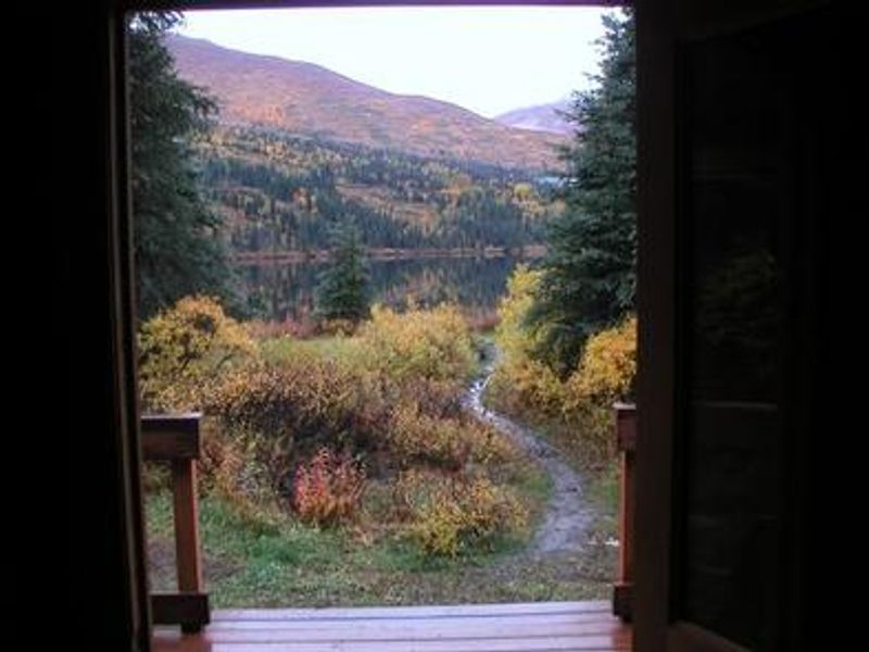From the Resurrection Pass South Trailhead at milepost 53.2 on Sterling Highway, hike 9 miles to the cabin. From the Resurrection Pass North Trailhead at milepost 4 on Resurrection Creek Road, hike 29.8 miles. Accessible by hiking, mountain biking, horseback, skiing, snowmobile (seasonal), or floatplane.
