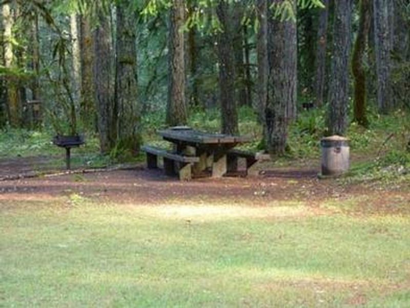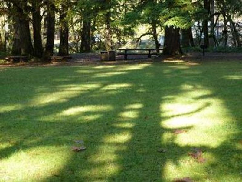 Rujada Day Use Picnic Area is set along the banks of Layng Creek in Umpqua National Forest, featuring a large open grassy field surrounded by Douglas fir trees. The area is designed for group activities and family gatherings, with ample space for sports and outdoor games. On-site amenities include picnic tables with fire pits or grills, a playground, and a horseshoe pit. The moderately challenging 1.8-mile Swordfern Trail begins at the historic Civilian Conservation Corps Campground Register booth located in the picnic area. The trail parallels the south side of Layng Creek, traveling through second growth Douglas fir and a lush swordfern understory, crossing a wooden footbridge before climbing to an abandoned logging road. Hikers can complete the full loop back to the picnic area or opt for a shorter route. The surrounding forest features wildflowers including pioneer violet and wild iris, and in autumn, visitors can enjoy brilliant fall colors along Layng Creek. Three spectacular waterfall trails are located within 10 miles: Spirit Falls (0.4 miles, more difficult, 60-foot waterfall), Moon Falls (0.5 miles, easy, 125-foot cascading waterfall with picnic tables), and Pinard Falls (0.6 miles, more difficult, 105-foot waterfall). The area is operated by a concessionaire under permit from Umpqua National Forest.