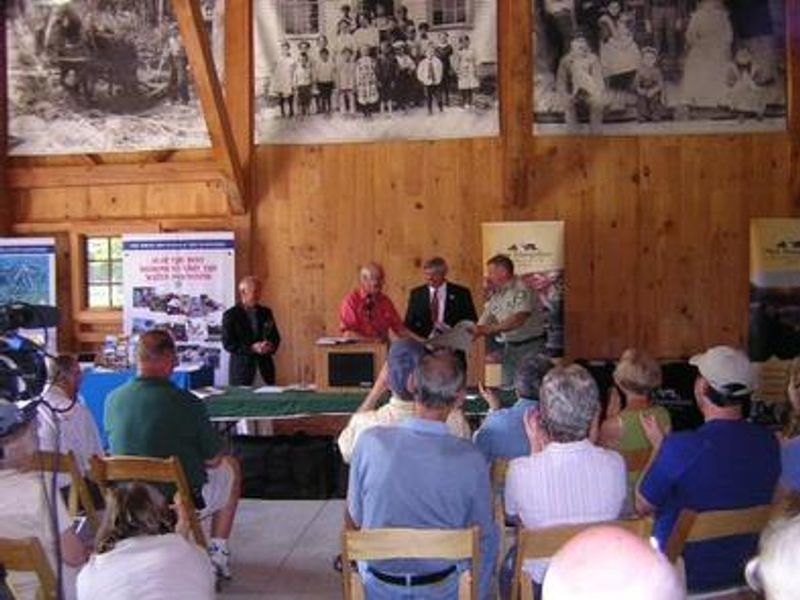 Russell-Colbath Barn is a timber frame barn constructed in 2003 as part of the Russell-Colbath Historic Site in White Mountain National Forest. The site preserves the history of the town of Passaconaway and includes the Russell-Colbath House, built in 1832, which is the only original structure remaining from that historic settlement. The barn serves as a venue for interpretive programs and can be rented for group gatherings. The historic site includes parking, toilet facilities, picnic tables, and interpretive signs. The accessible half-mile Rail N River Trail provides easy access to the Swift River. The site is located on the scenic Kancamagus Highway, offering visitors a chance to explore the natural beauty and cultural heritage of the White Mountains while enjoying nearby hiking, fishing, and wildlife viewing opportunities. This facility operates as a rental venue rather than a traditional campground. Visitors can reserve the barn for events and gatherings, with nearby Jigger Johnson Campground providing camping accommodations. The historic site is open seasonally on weekends when staffing allows.