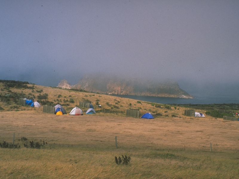San Miguel Island Campground sits on the westernmost of the Channel Islands, offering one of the most remote and rugged camping experiences in Channel Islands National Park. Perched on a plateau at 500 feet elevation, the campground is accessible only by boat or small aircraft, requiring a steep one-mile uphill hike from Cuyler Harbor or a shorter quarter-mile walk from the airstrip. The island's extreme weather creates a harsh but profoundly beautiful environment. Winds of 30 knots are common year-round, and campers must come prepared with sturdy, low-profile tents and gear suitable for cool, damp fog and constant wind exposure. Despite the challenging conditions, the campground rewards visitors with incredible views and access to unique natural and cultural resources including the caliche forest, fossil pygmy mammoth bones, and historic Cabrillo monument. Wildlife viewing is exceptional, with the island hosting thousands of pinnipeds along 27 miles of isolated coastline and 13 nesting seabird species. The guided 16-mile roundtrip hike to Point Bennett offers views of over 30,000 seals and sea lions representing up to five different species. Endemic island foxes and deer mice inhabit the recovering landscape where native plants like giant coreopsis, lupine, and buckwheat are recolonizing after a century of sheep ranching. The island's isolation and former use as a naval bombing range add to its unique character, though unexploded ordnance remains a concern requiring visitors to stay strictly on designated trails.