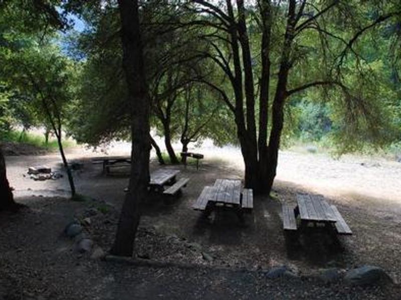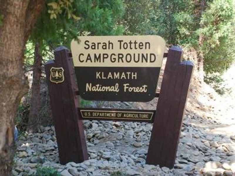 Sarah Totten Campground is located within the Klamath Wild and Scenic River corridor in northern California's Klamath National Forest. The campground sits in a shaded area next to the Klamath River at an elevation of 1,400 feet, approximately 33 miles east of Happy Camp and one mile east of the historic Hamburg townsite. The campground features nine family campsites and two group sites that can accommodate up to 30 people each. Family sites are first-come, first-served, while the two group sites are reservable during peak season from mid-May to mid-October. The campground's upper loop, which includes four family sites and one group site, is open year-round. A sandy boat launch provides river access for drift boats and whitewater craft. The Klamath River offers class II-III whitewater rafting and kayaking, as well as excellent fishing opportunities. Nearby, visitors can explore the remains of Hamburg, once a popular destination for sportsmen including author Zane Grey. The area features hiking trails and access to the 1.7-million-acre Klamath National Forest, which spans elevations from 450 to 8,900 feet and supports diverse wildlife.